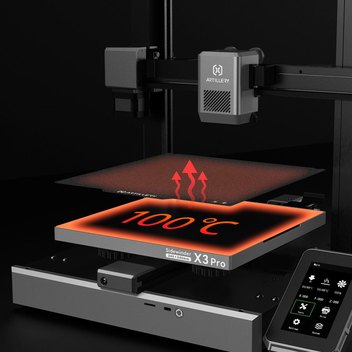 The heated platform can reach temperatures of up to 100°C, providing excellent adhesion for a variety of materials, including PLA, ABS, and PETG. This ensures stability and reduces warping during printing, even for more challenging filaments.