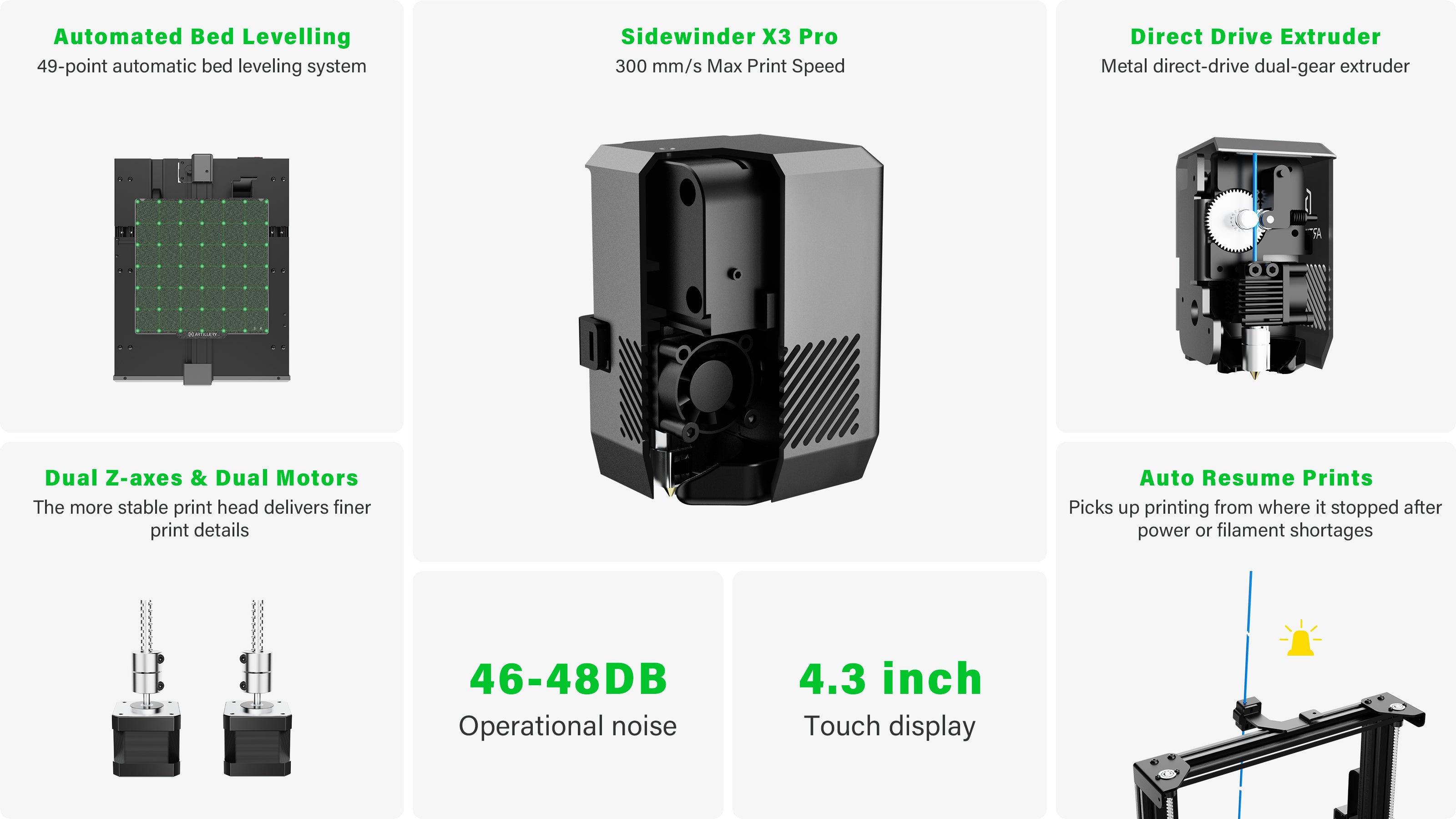 Equipped with a dual-gear direct-drive extruder, this printer ensures smoother filament feeding and improved extrusion accuracy. Perfect for flexible filaments like TPU, it minimizes clogging and enhances overall print quality.